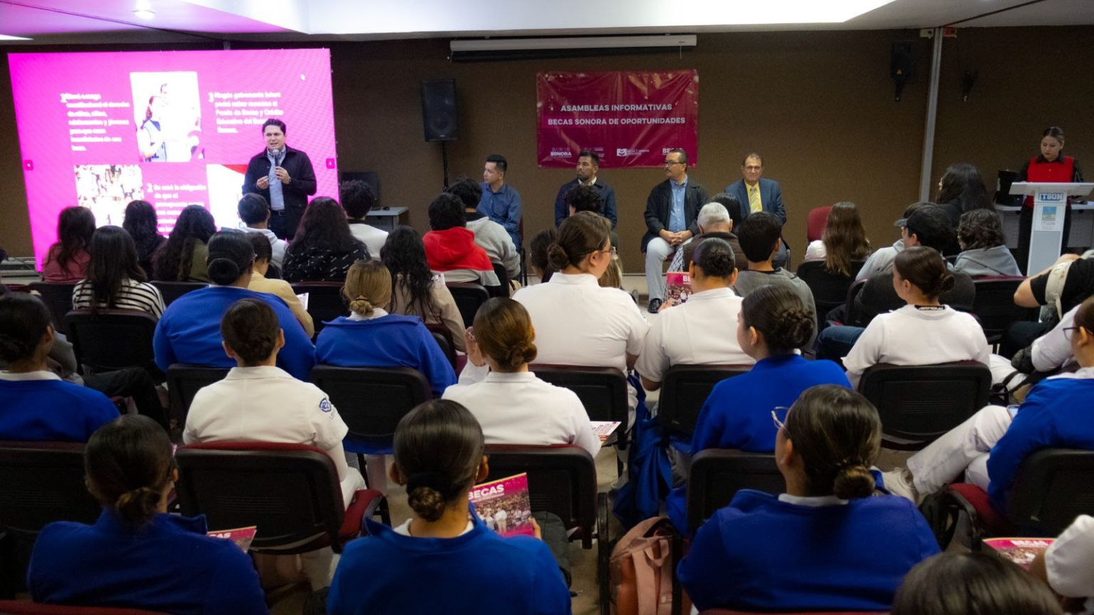 Para que los estudiantes de nivel superior obtengan información que les ayude a contar con oportunidades educativas, el Ayuntamiento de Guaymas participó en la asamblea informativa realizada en el Instituto Tecnológico de Sonora (ITSON), Unidad Guaymas, donde se presentaron los programas de becas “Sonora de Oportunidades”, impulsados por el Instituto de Becas y Crédito Educativo del Estado de Sonora.
