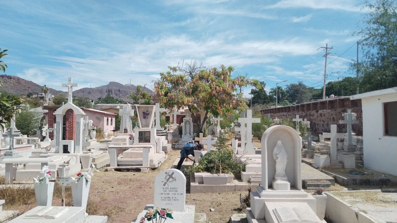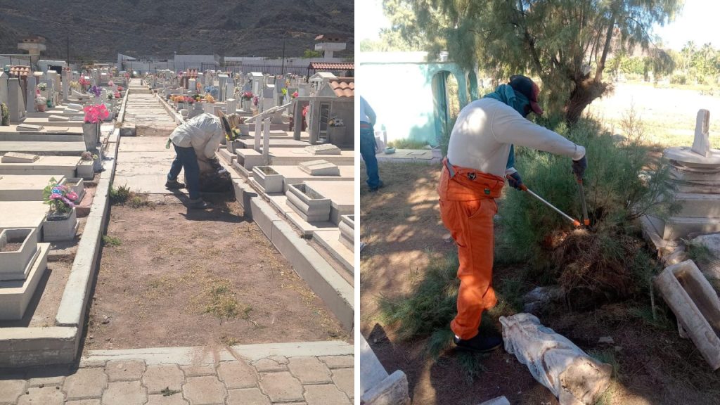 Con el objetivo de mantener espacios dignos, limpios y en mejores condiciones para las familias guaymenses, el Ayuntamiento de Guaymas, a través de la Dirección de Servicios Públicos Municipales, continúa con los trabajos de limpieza en los panteones Héroes Civiles y San Fernando.