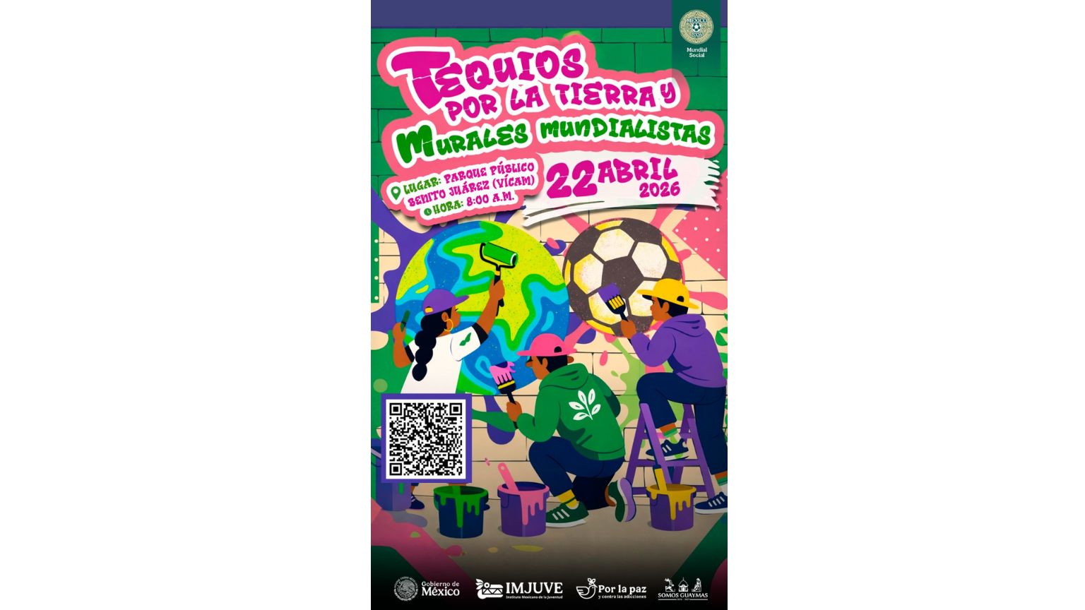 Alejandro Ruiz Fonseca, titular de la dependencia, informó en conferencia de prensa, que esta jornada se realizará en el parque público Benito Juárez en el marco del Día de la Tierra y del Mundial Social, por lo que invitó a las y los jóvenes a sumarse a este evento, que contempla las categorías Tequios por la Tierra, Murales Mundialistas y Tequios y Murales.