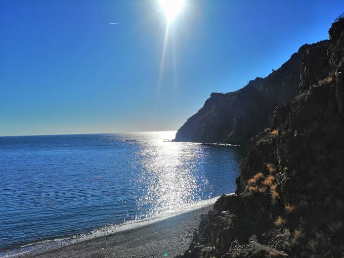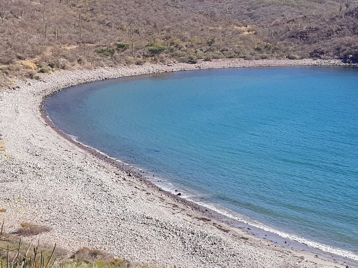 Es una playa pequeña protegida, el agua del mar es cristalina de color turquesa y guijarro
